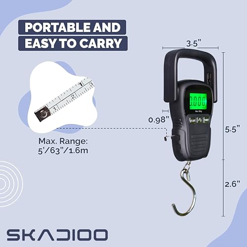 SKADIOO Weight Machine for Luggage 50kg | 6 Months Warranty | Luggages Weighing Scale for Flights, Portable Scale with Wide Soft Handle for Luggages, Gas Cylinder & Travel Bags & Suitcases