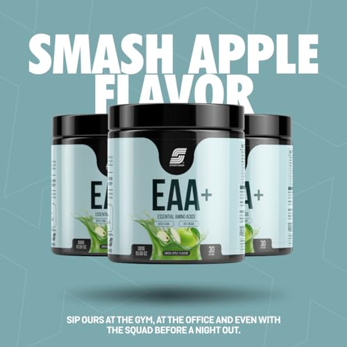 Sparkfusion 8500 mg Eaa+ & 6000mg Bcaa (300 gm) Essential Amino Acids | Pre/Intra Workout and Muscle Growth & Recovery | All 9 Essential Amino Acid EAA Powder (Smash Apple)