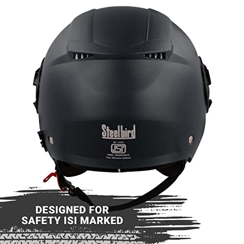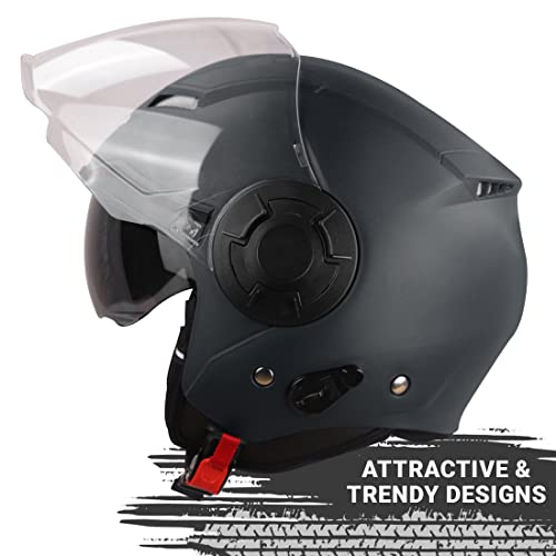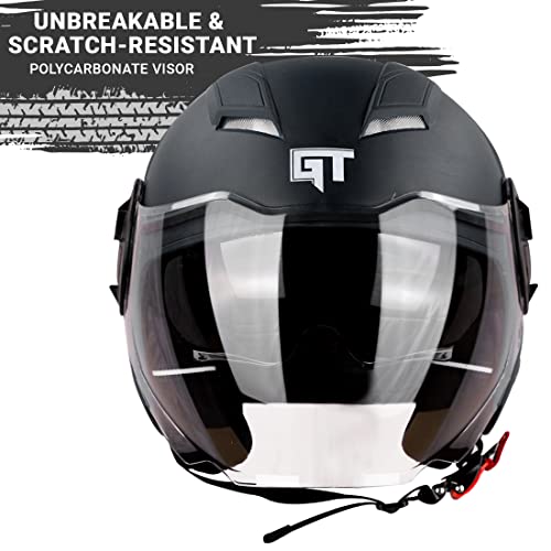Steelbird GT Dashing ISI Certified Open Face Helmet for Men and Women with Inner Sun Shield ( Dual Visor Mechanism ) (Large 600 MM, Dashing Black)