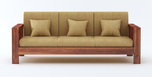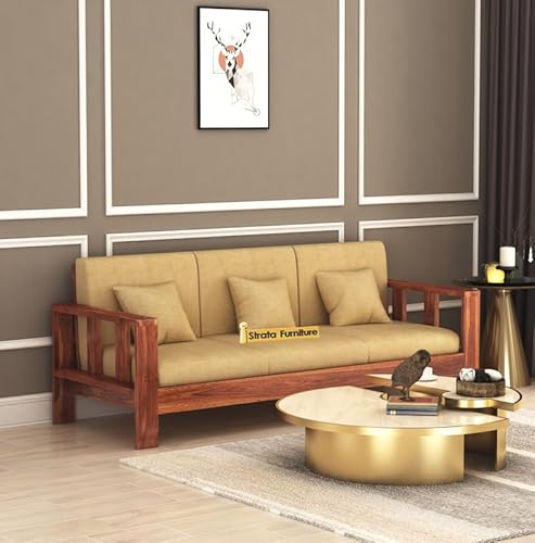 Strata Furniture Sheesham Wood 3 Seater Sofa Set for Hall Home Office Living Room Solid Wooden Three Seater Sofa Set Furniture (Honey Finish)
