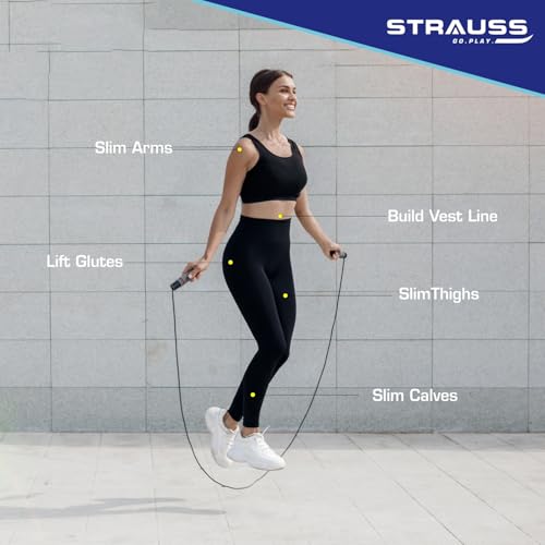 Benefits: Strauss Skipping Rope is ideal for aerobic exercises for weight loss , slimming down, improving flexibility, developing core strength and good for heart.