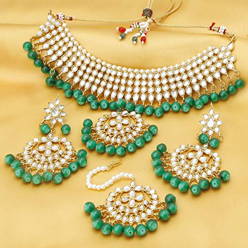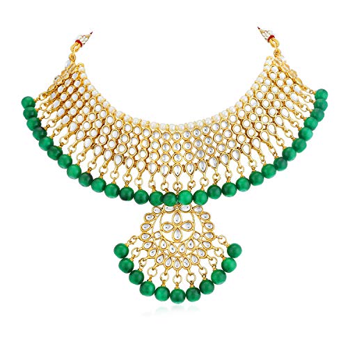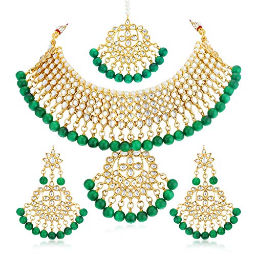 Traditional Kundan Gold Plated Choker Necklace Set for Women will complement any Indian attire. Women Love Jewelry as it not only enhances their beauty, but also gives them the social confidence. Make your moment memorable with this range. This jewel set features a unique one of a kind traditional embellish with antic finish. Earrings are very easy to use being lightweight and has a design which makes it very comfortable
