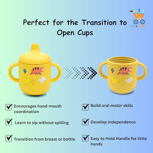 EASY-GRIP DESIGN – Ergonomically designed with soft, lightweight material with handles, making it a perfect sippy cup for babies 6 month helping babies develop self drinking skills effortlessly.