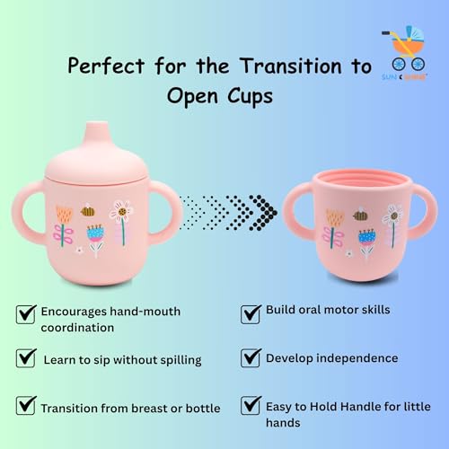EASY-GRIP DESIGN – Ergonomically designed with soft, lightweight material with handles, making it a perfect sippy cup for babies 6 month helping babies develop self drinking skills effortlessly.