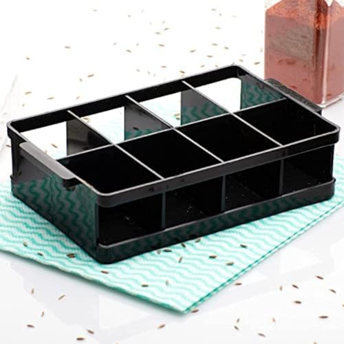 Tasmax 8 Pcs Sets Airtight Masala Box For Kitchen Masala Container For Kitchen Spice Jars Multi Storage Container For Kitchen Easy Flow Spice Storage Container With Tray Spice Jars - Plastic, Black