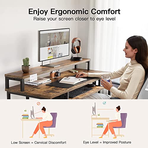 PRODUCT DIMENSIONS: Length = 120 cm, Width = 60 cm, Height = 87 cm (47.2 inches x 23.6 inches x 34.2 inches) Monitor riser size : L = 120 cm x W = 20 cm x H = 10 cm and Keyboard tray size : L = 55 cm x W = 32 and Shelves size : L = 30 cm x W = 60.