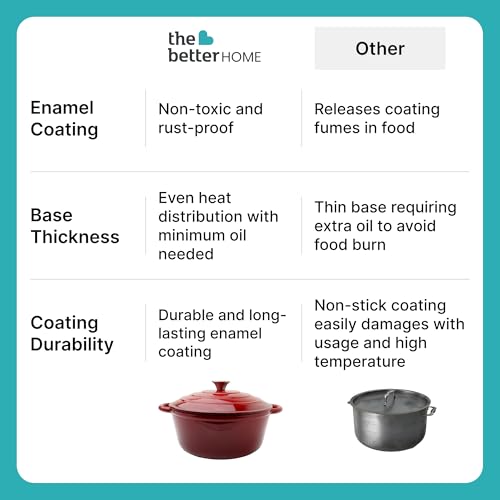 ✅ EFFORTLESS COOKING: Enjoy even heating, superior heat retention and rust proof cooking with smooth enamel coating.