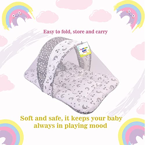 This new born baby bed mattress with net, supported with cotton outside and inner filling with recon gives a soft and comfortable zone to your little one. Baby bed; baby bedding set; baby sleeping bags; toddler bedding set; cot bedding sets; mosquito net; sleeping bag; baby products; new born baby; mattress; cot bedding sets; newborn baby products all; baby beds; mosquito net for baby; baby mattress.