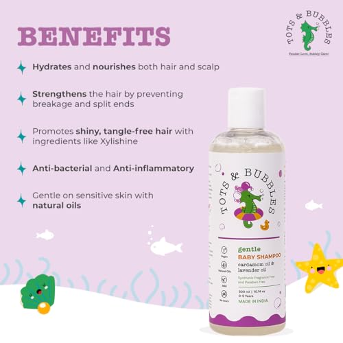 GENTLE AND TEAR-FREE: TOTS & BUBBLES Baby Shampoo is specially formulated to be gentle on your baby\’s delicate scalp and eyes. It is designed to create a tear-free bathing experience, ensuring a comfortable and enjoyable bath time for both parents and babies.