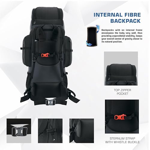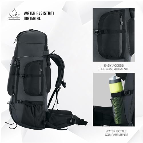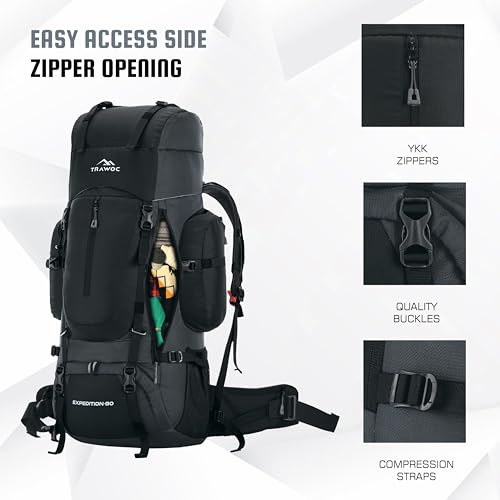 Ample Storage Space: Featuring a large 80 liter capacity and multiple compartments, this trekking backpack offers plenty of room for all your essentials on long trips and outdoor adventures. It includes a dedicated shoe compartment for added convenience and organization.
