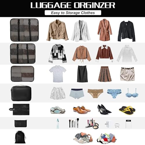 ✈ LUGGAGE COMPATIBILITY : Compatible with most travel bags, luggage, suitcases, backpacks, bagpacks, duffle bags. Can fit in 24–25-inch travel luggage. These packing organizers can make it easy for you to save space in your luggage/bag by classifying your belongings and keeping them from getting lost. This also makes security checks at the airport quick and convenient.