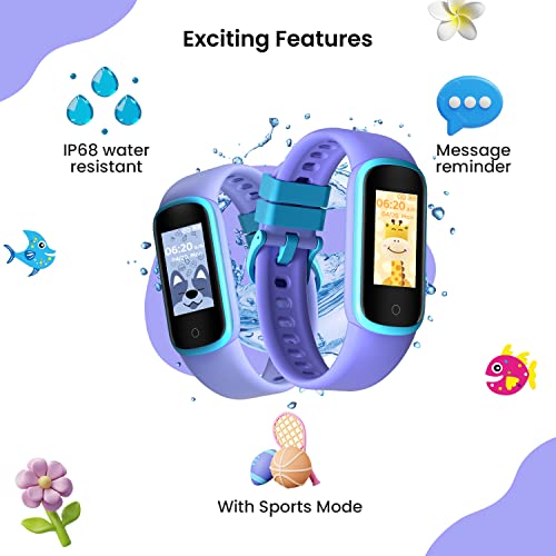 Exercise Fitness Tracker for Kids with Step and Distance Counter : Record the number of daily movement steps to view the current real time steps. The distance of motion is estimated based on the number of walking steps. Estimate the calories burned based on the number of walking steps. Smart watch for kids with pedometer like walk, running, climb, ride, cycling, hiking and many more.