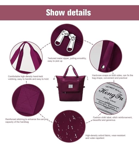 【EASY TO STORE】When the luggage is too heavy, it will be an excellent shoulder overnight bag, freeing the burden of both hands. Folding the tote bag, only the size of a book.