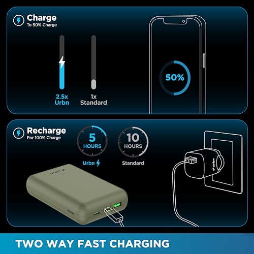 Two-Way Fast Charge: The URBN 20000 mAh Premium Black Edition Nano Power Bank features two-way fast charging, allowing you to charge your devices and the power bank itself simultaneously. Get the power you need when you need it most.