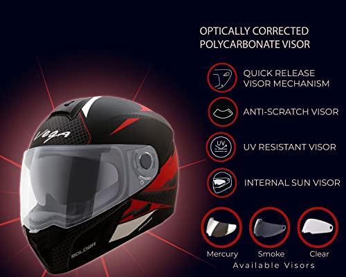 Visor: The visor is scratch-resistant and UV-resistant, made from optical polycarbonate with a quick-release mechanism for smooth visor changes.