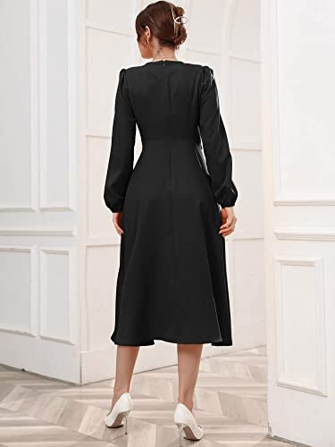 Pattern: Solid/Plain | Closure: Zip | Type: A-line | Neckline: V Neck | Sleeve type: Bishop Sleeve | Sleeve length: Long Sleeve | Waist line: High Waist | Hem Shaped: Flared