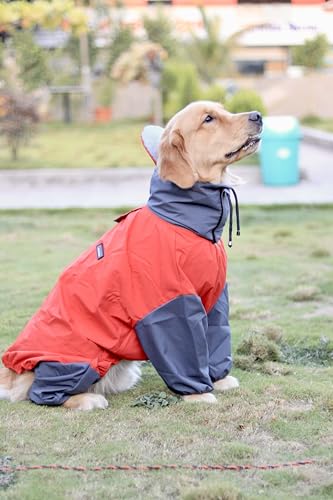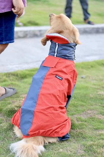 WATERPROOF DESIGN: Full-coverage raincoat with waterproof material keeps your large dog dry during walks in wet weather, featuring red and grey colour combination
