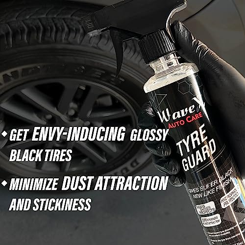 Showroom-Worthy Tyres: Turn heads with our Tyre Guard solution, providing a glossy black finish that lasts. Not only does it enhance the appearance of your tyres, but it also minimizes dust attraction and stickiness, keeping your tyres cleaner for longer.
