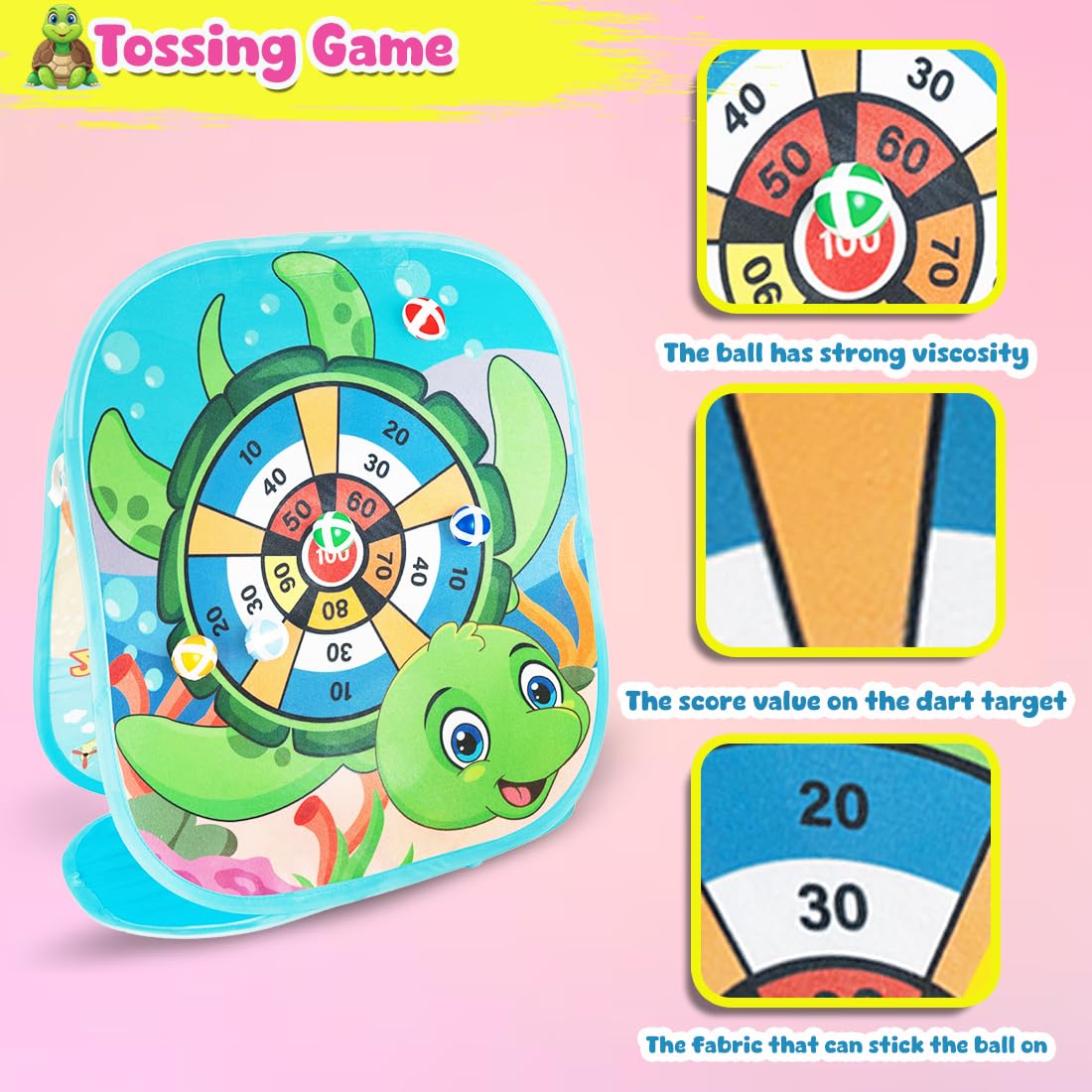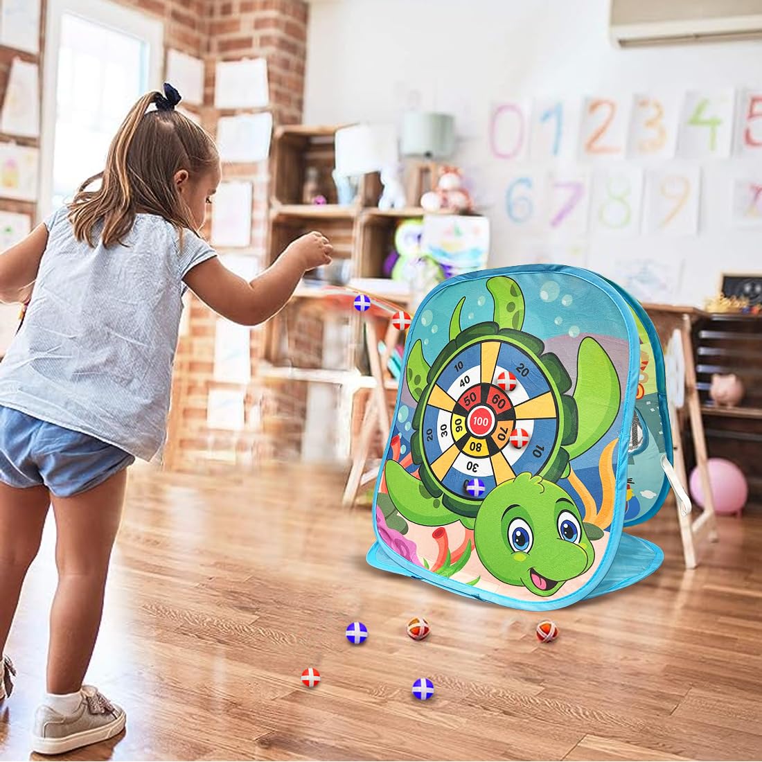 2-in-1 Game Set: Enjoy bean bag toss and dart game in one board.Safe & Durable: Made with high-quality, kid-friendly fabric.Quick Assembly: Pops open for instant play, folds for easy storage.
