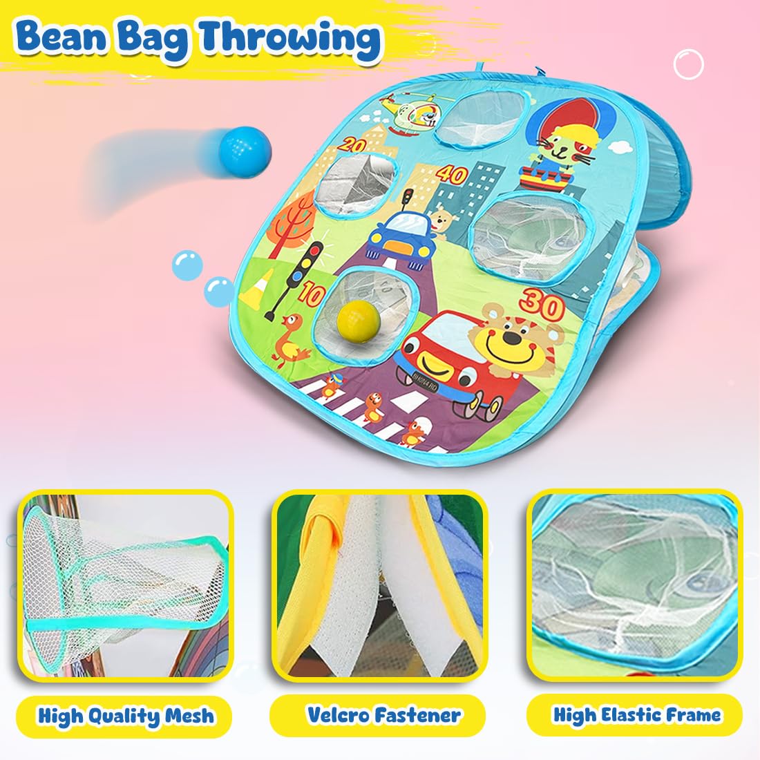 More than just fun, this activity game helps develop essential skills! Kids improve hand-eye coordination, balance, and cognitive abilities while aiming, tossing, and scoring points.