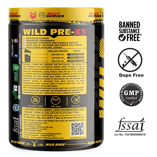 The WILD BUCK : Advanced Pre-workout formulation designed for Intense Energy, Maximum Focus, Amplified Pumps, Explosive Power, Support Cognitive Function, Enhances Mood, Expand Muscle Endurance and Help to Delay Fatigue