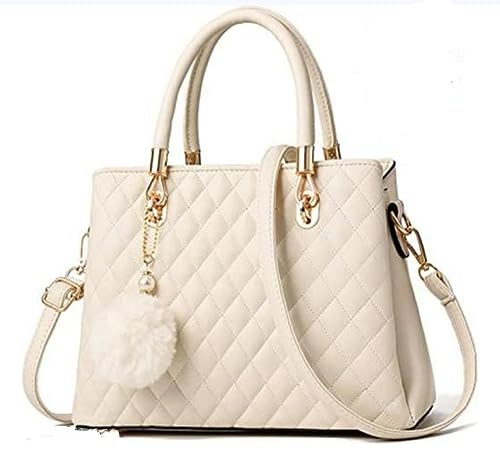 women\'s pu leather handbag shoulder bag hand held bag with long strap queen collection simple sober and stylish (Cream HB12)