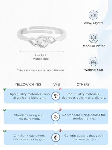 Size : US 7 Adjustable Diameter of Ring: 17.3 MM and Circumference of Ring: 5.43 CM. Material is Silver Plated and Metal is Alloy.