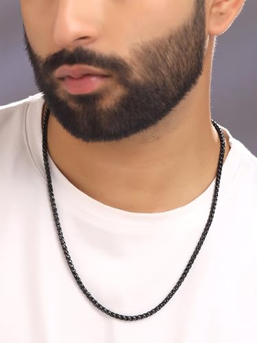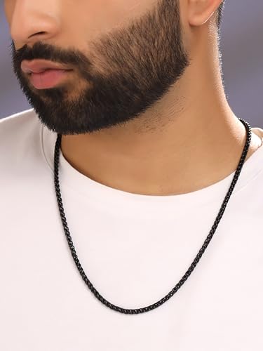 Simple and Elegant black Colored Smooth Finished Interlinked Neck Chain for Men and Boys. Our Product is perfect for valentines Anniversary Birthday gift for Husband and Boyfriend.