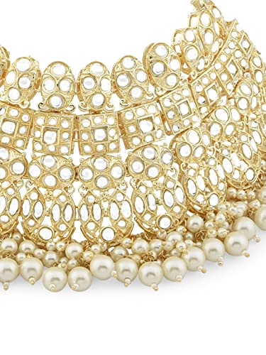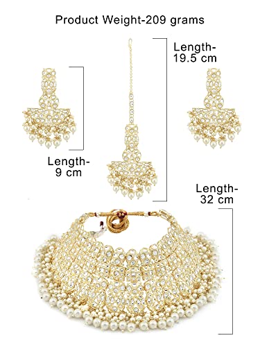 Color: Gold, Material: Alloy, Plating:22K Yellow Gold, Stones: Kundan & Pearls