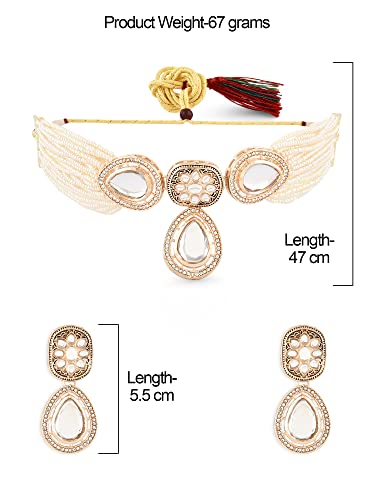 Color: Gold, Plating: 22K Yellow Gold, Material: Alloy, Stones: Kundan & Pearls